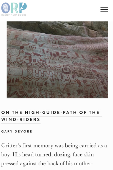 My short story, published in the online literary journal Oyster River Pages, is about a young hunter-gatherer growing up in preshistoric Colombia. Abandoned by his clan, he meets another outcast and they learn how to become a "clan of two."